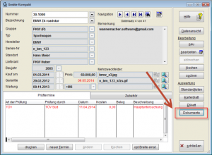 Das Dokumenten-Archiv von Geräte-Kompakt bzw. Geräte-Max wird vom jeweiligen Bildschirmformular für die Gerätestammdaten aufgerufen.